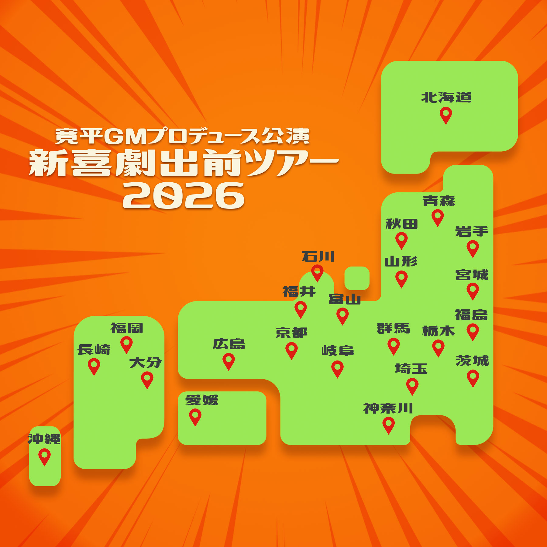 間寛平が座長となり2026年度も日本全国北から南まで今一番面白い「コテコテ」な新喜劇をお届けにまわります!