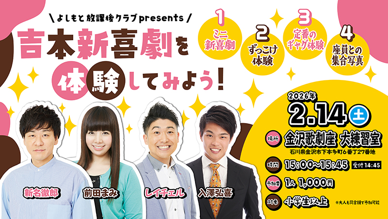 同日に「よしもと放課後クラブpresents吉本新喜劇を体験してみよう!」を開催します!