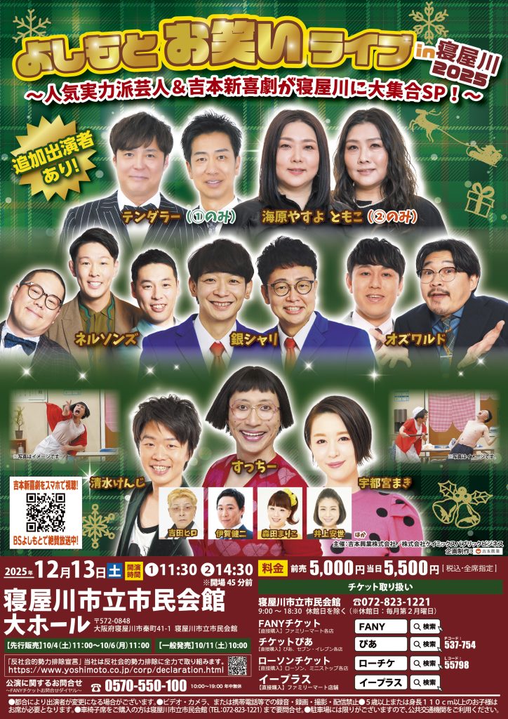【大阪】よしもとお笑いライブin寝屋川2025~人気実力派芸人&吉本新喜劇が寝屋川に大集合SP!~